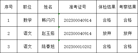 根據《2023年安徽亳州機電信息工程學校非在編教師公開招聘》有關規定,現將2023年安徽亳州機電信息工程學校非在編教師公開招聘遞補人員擬錄用公示。