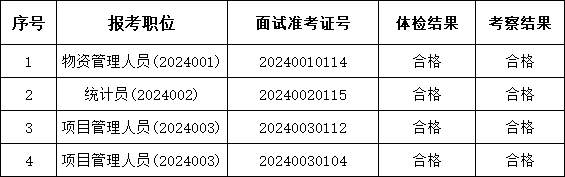關于2024年亳州恒鑫建筑工程設備租賃有限公司 外包人員公開招聘擬聘人員體檢、考察結果公示