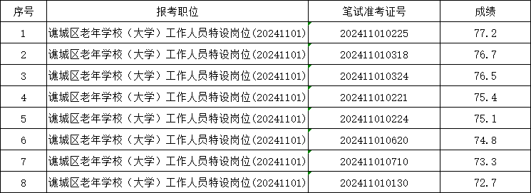 根據(jù)《2024年譙城區(qū)老年學(xué)校(大學(xué))工作人員特設(shè)崗位公開招聘》有關(guān)規(guī)定,現(xiàn)將2024年譙城區(qū)老年學(xué)校(大學(xué))工作人員特設(shè)崗位公開招聘擬入圍體檢、考察工作有關(guān)事項公告如下: